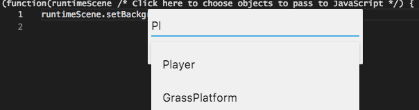 Si no haces esto, el código seguirá funcionando, pero el editor solo podrá proporcionarte los métodos de gdjs.RuntimeObject