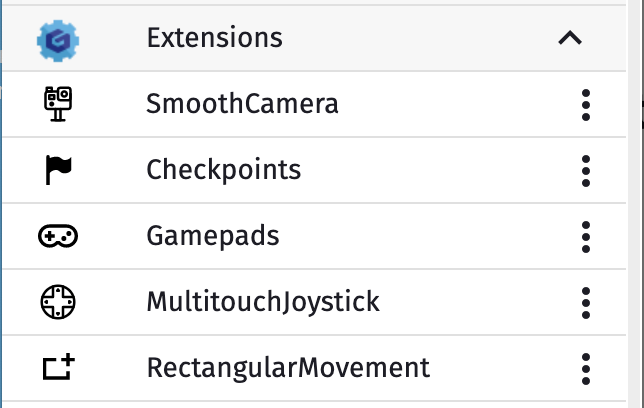 Functions are grouped into "extensions". They are the same as the extensions that you can install for your game. You can see the list of extensions that the game has, as well as add a new extension in the Project Manager: