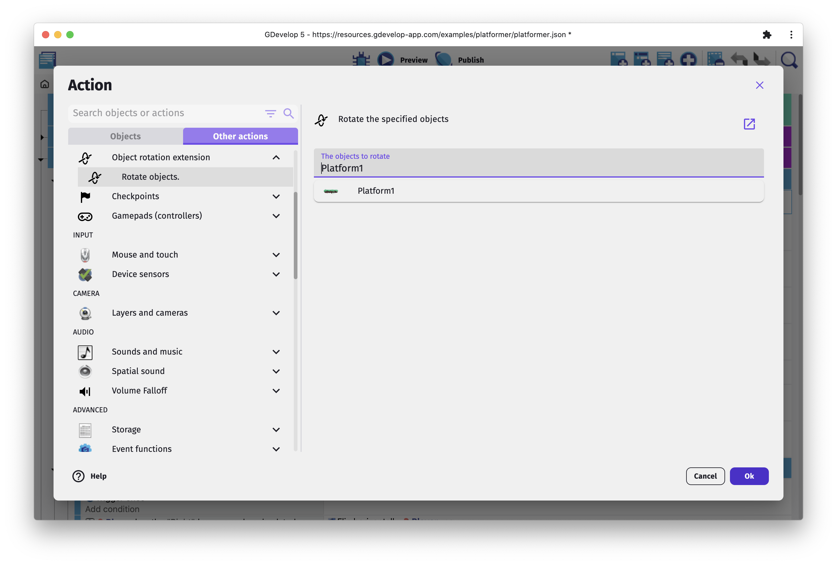 That's it! The function is used like any other condition, action or expression in the Events Editor.