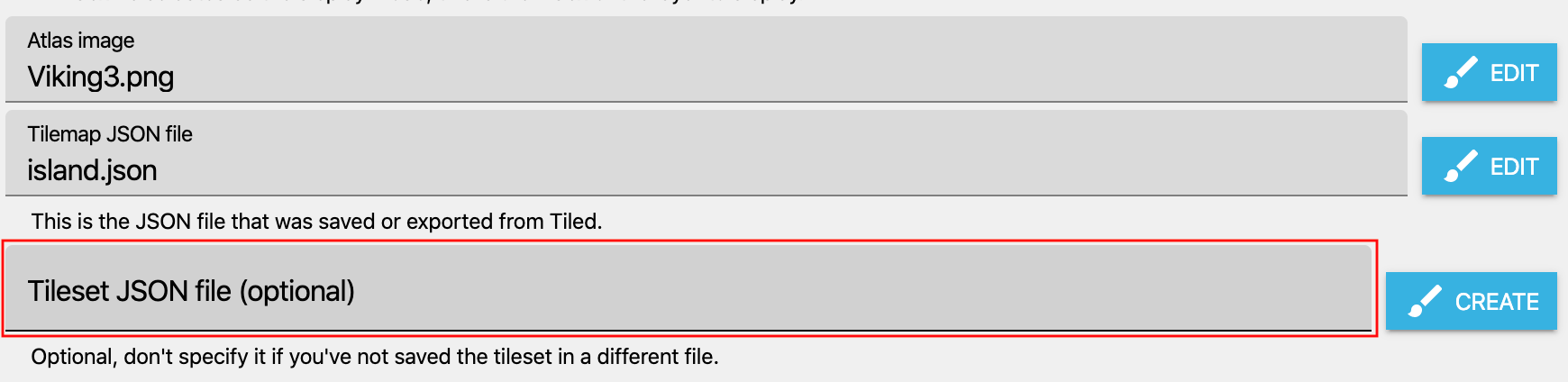 • If you do not provide a tileset JSON file, the object will look for a tileset inside the Tilemap JSON and load it if present.