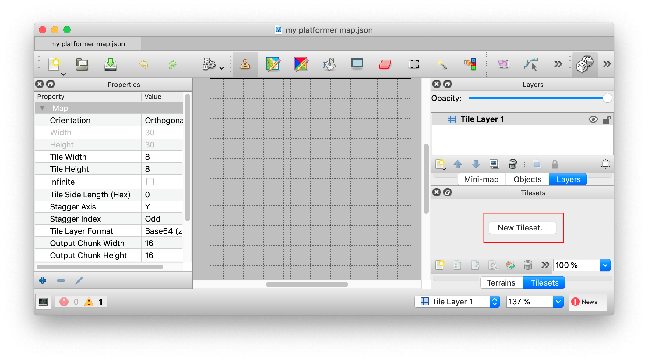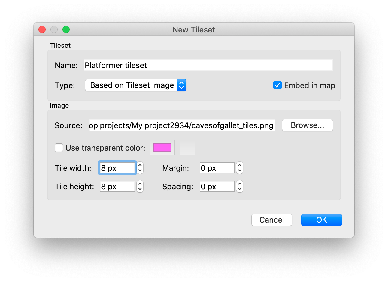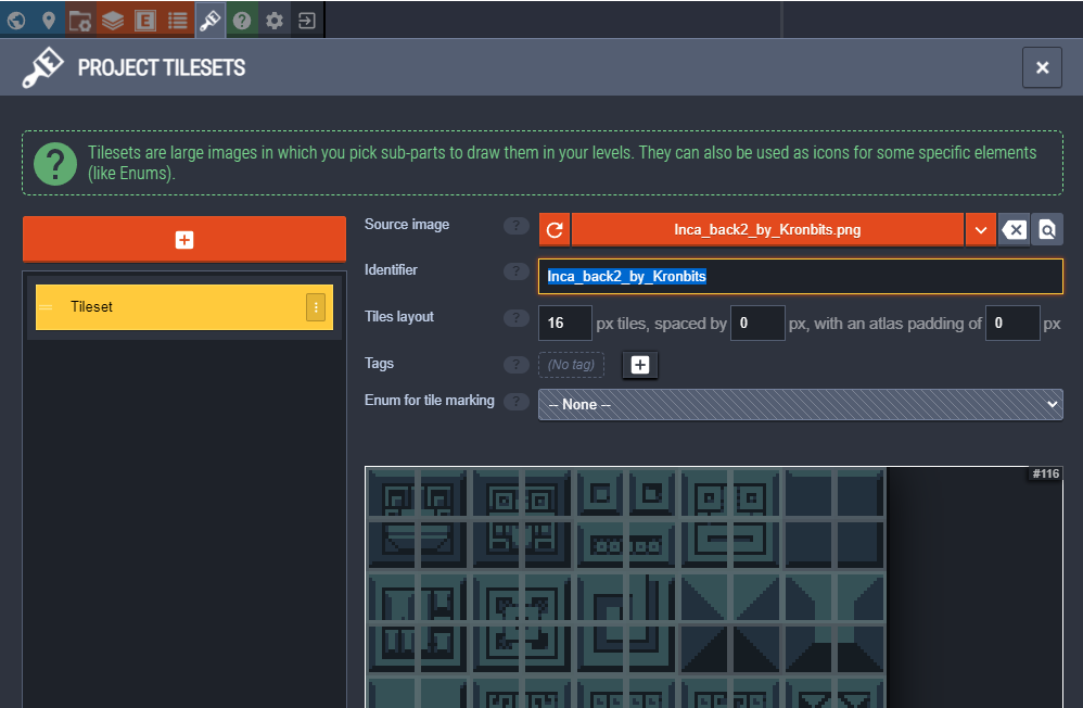 • Click the plus + button to add a new tileset. A file browser will popup.