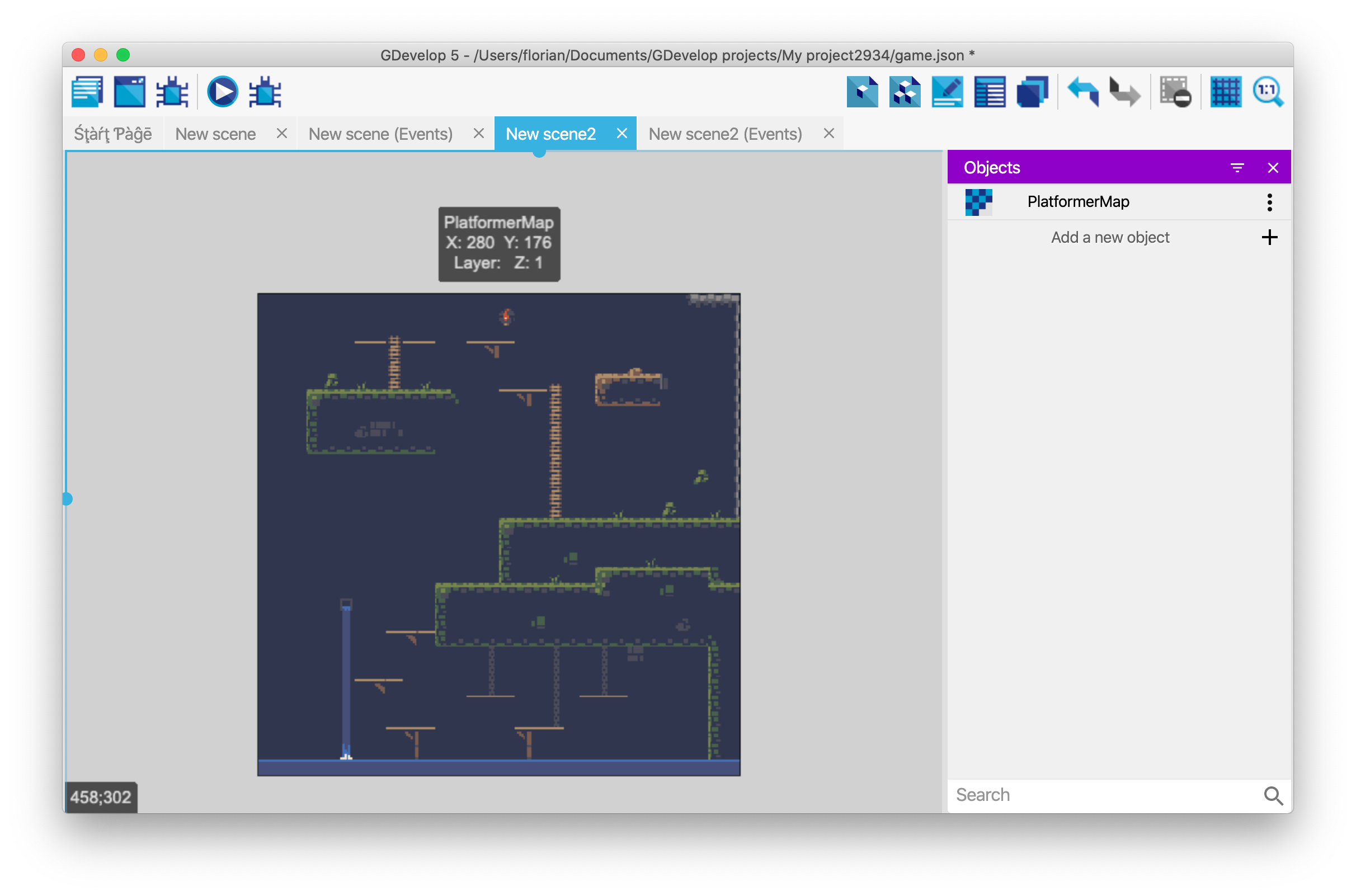 • Note, while the main ldtk project file can be used as a map file in GDevelop, it is safer to save a copy separately so the map can keep revisions, especially if a version control system like Github is being used.