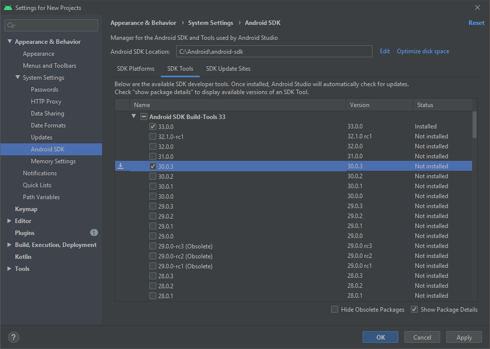 Cordova may need a specific version of the Android build tool. It can be installed with the SDK Manager. Ensure you have the Android SDKs of version 30 and 31.